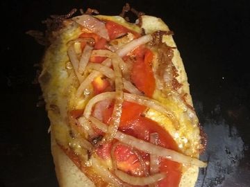Includes cheese, lettuce, tomato, pickles, grilled onion, mayo, mustard, & ketchup.